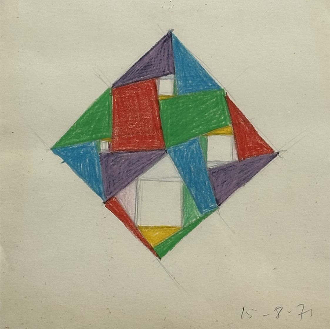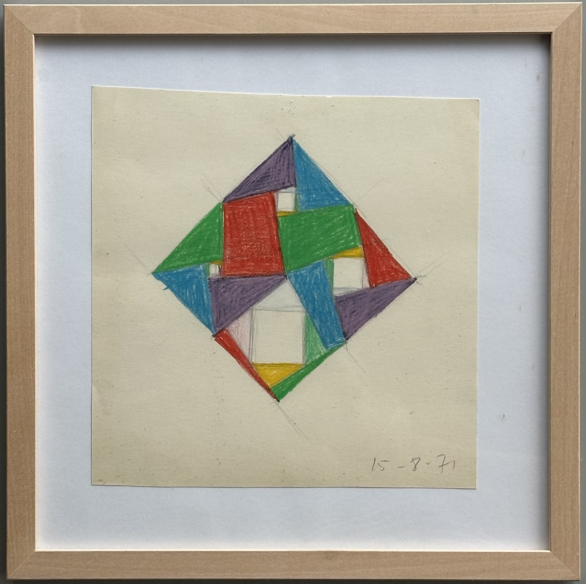 Abmessung: 22 x 22 cm. Unten rechts vom Künstler in Bleistift datiert: 15 - 8 -71. Gerahmt im einfachen Wechselrahmen (32 x 32 cm).