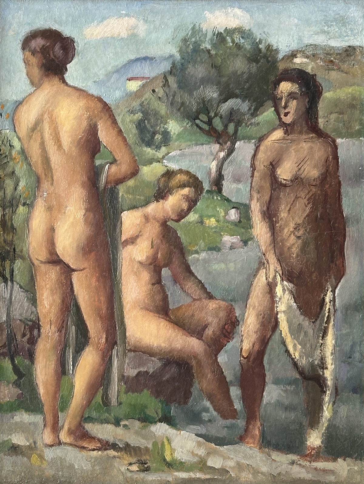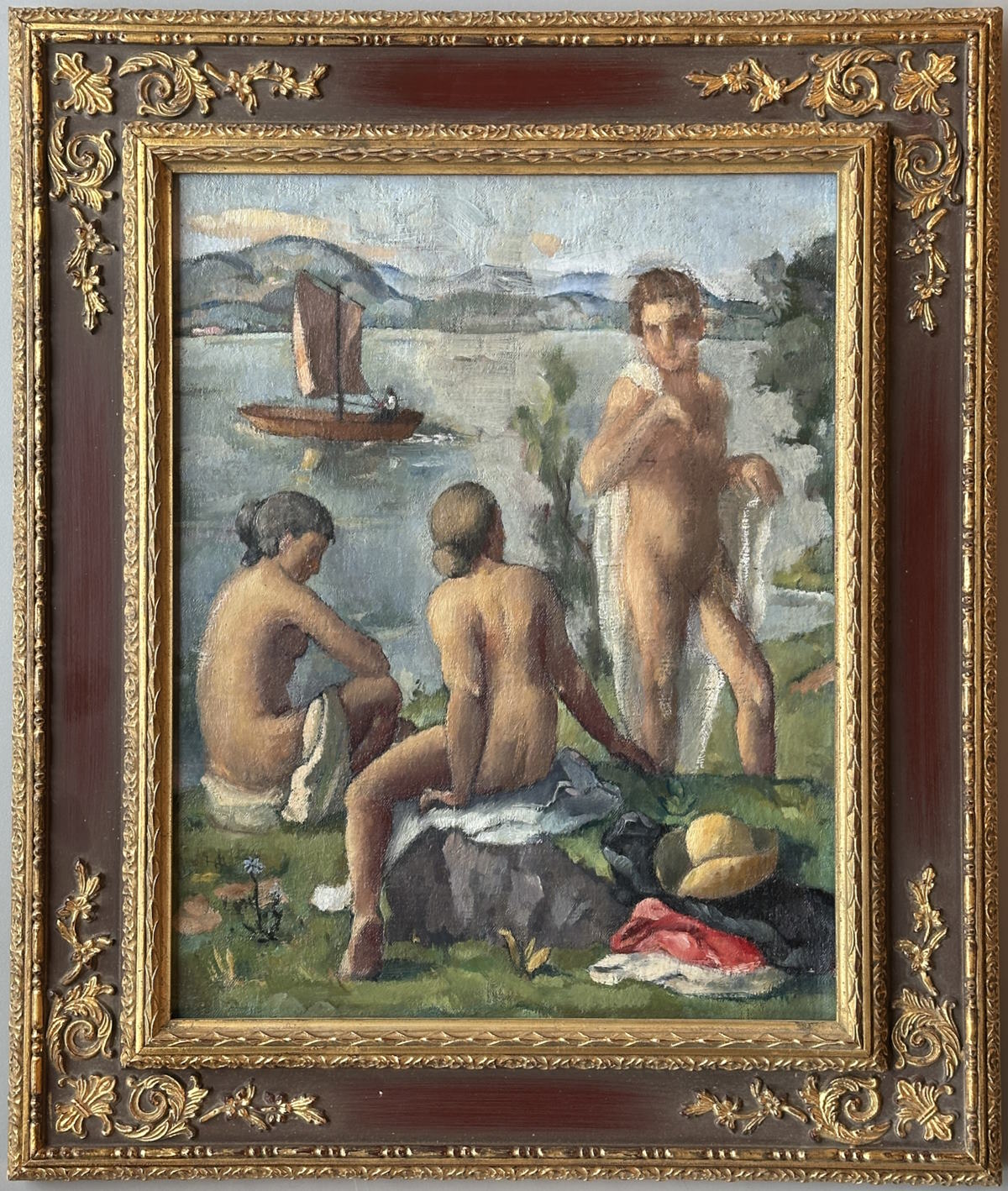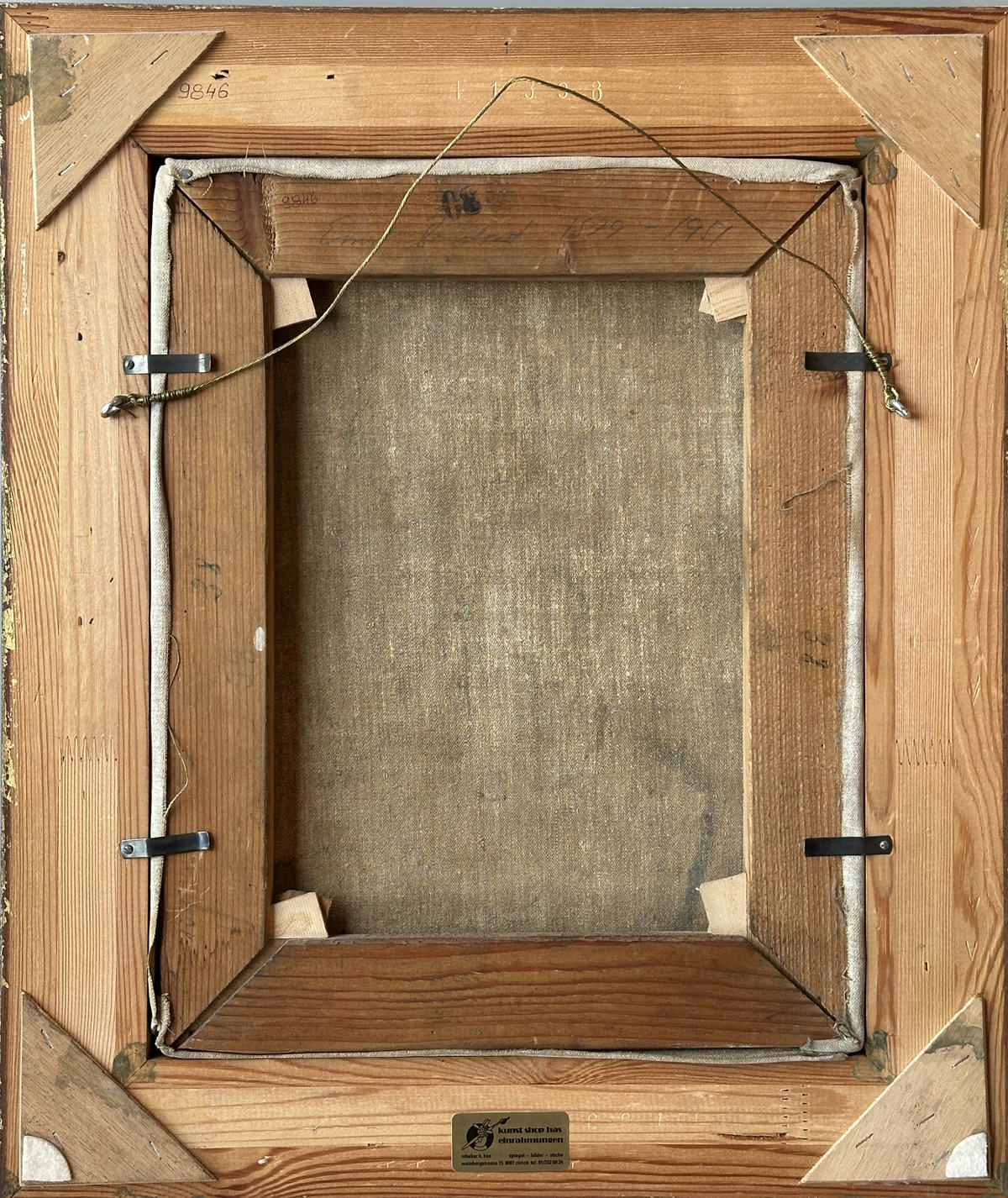 Abmessung: 38 cm x 31 cm. Rückseitig auf dem Keilrahmen mit einer alten Zuschreibung an Ernst Bosshart. In passender Rahmung (53 x 44 cm).