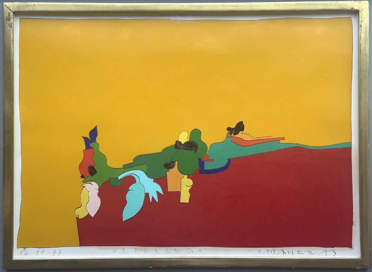 Abmessung: 50 cm x 70 cm. Am unteren Bildrand rechts signiert: Canameras, in der Mitte betitelt "ROTBERG" und links datiert: 16.11.77. Gerahmt und hinter Glas.