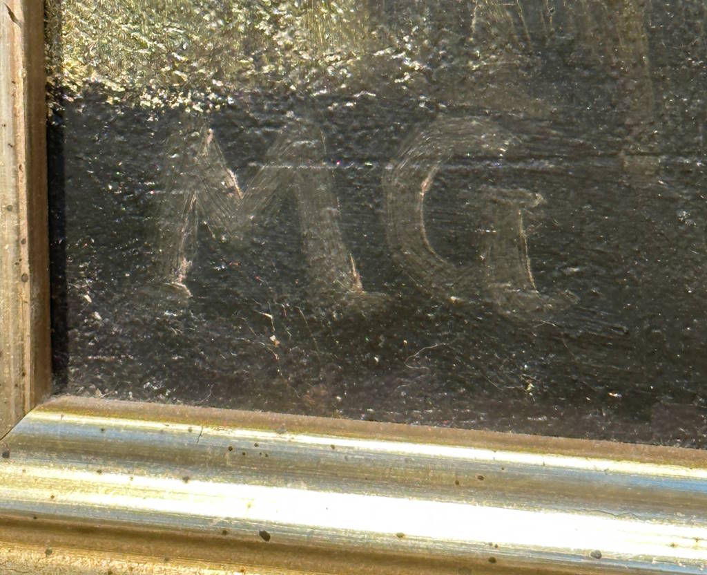 Abmessung: 70 cm x 60 cm. Unten links monogrammiert MG. Gerahmt (76 cm x 67 cm).