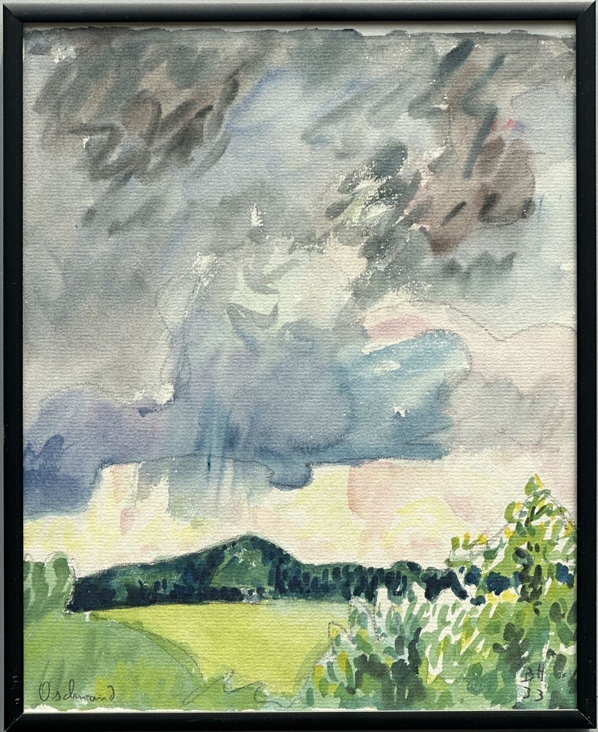 Abmessung: 22 cm x 30 cm. Unten rechts monogrammiert und datiert BH 22. Unten links bezeichnet: Ruino. Gerahmt und hinter Glas.