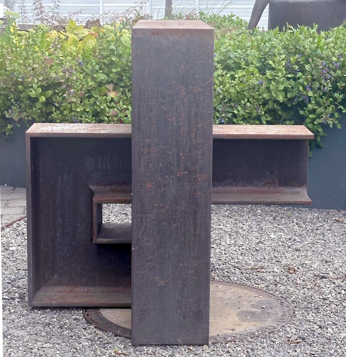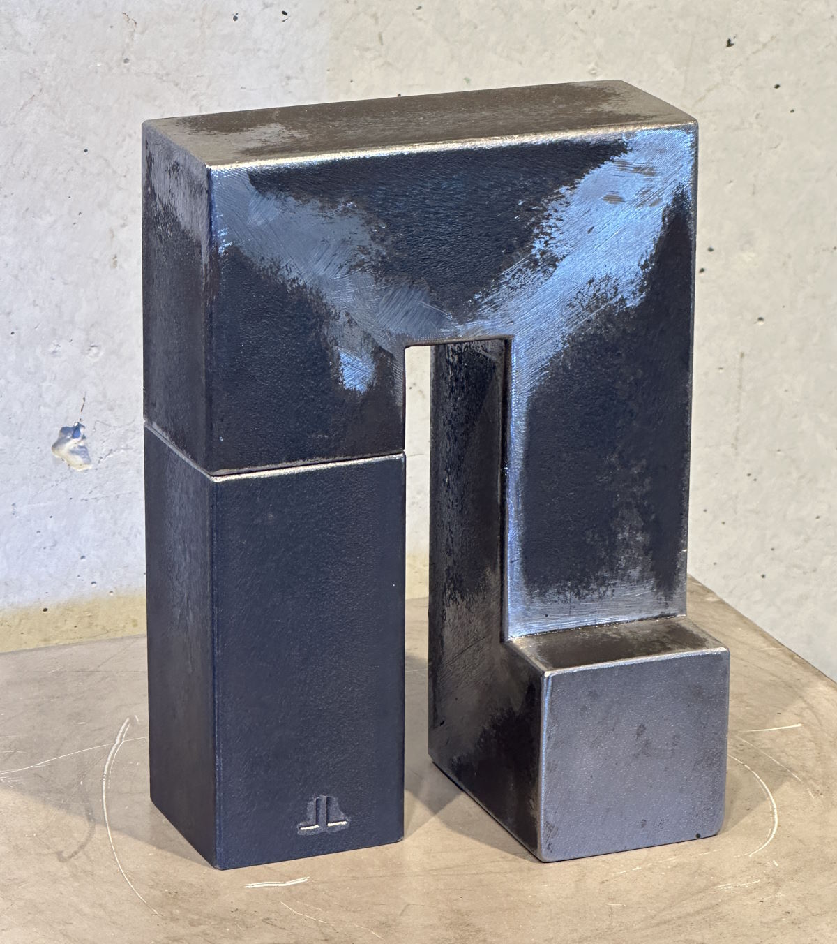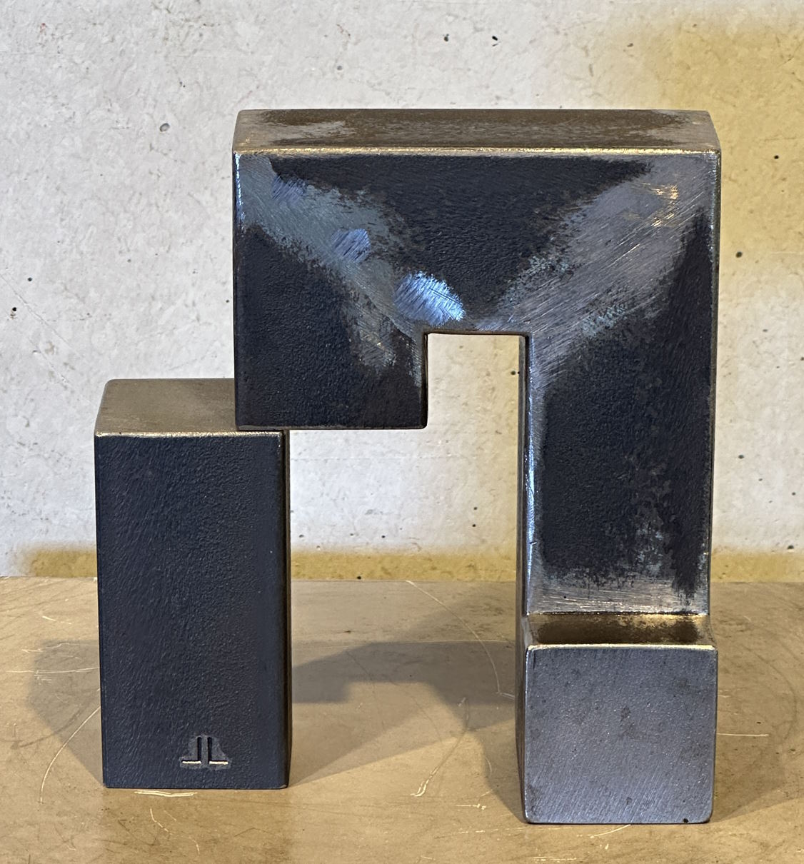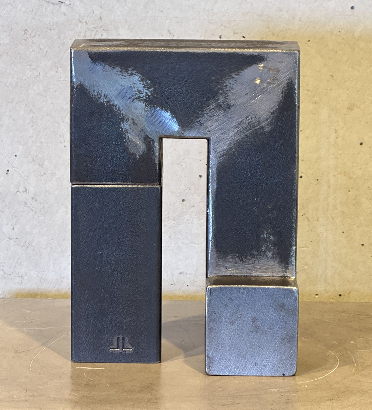 Abmesung: 88 x 88 x 88 cm. Unten am Rand in den Stahl gestempelt JL, links datiert 2017.