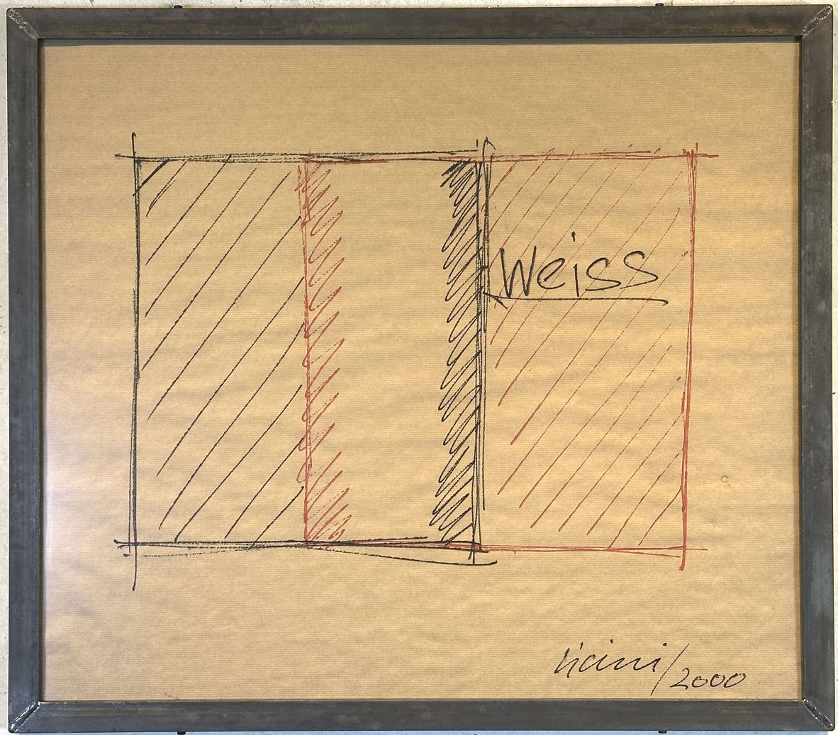 Abmessung: 65 x 75 cm. Unten links voll signiert und datiert: Licini 2000. Angeboten im Original (Licini) Eisenrahmen, hinter Glas.