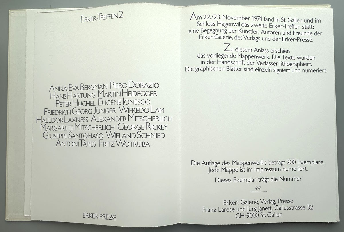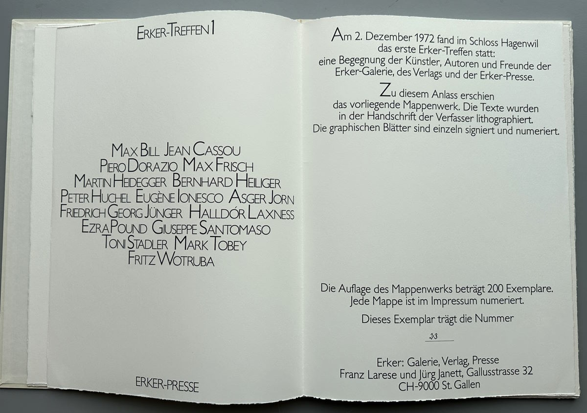 Im Impressum handschriftlich nummeriert: 23. Lose Doppelbogen in der Original Kartonmappe. Im Original Kartonschuber.