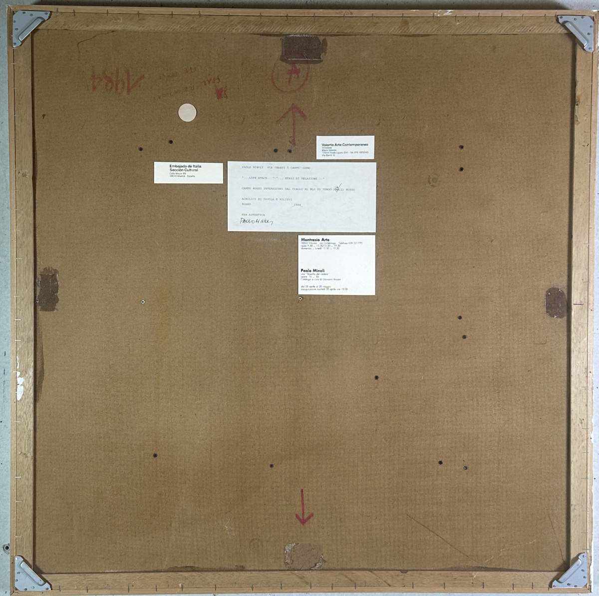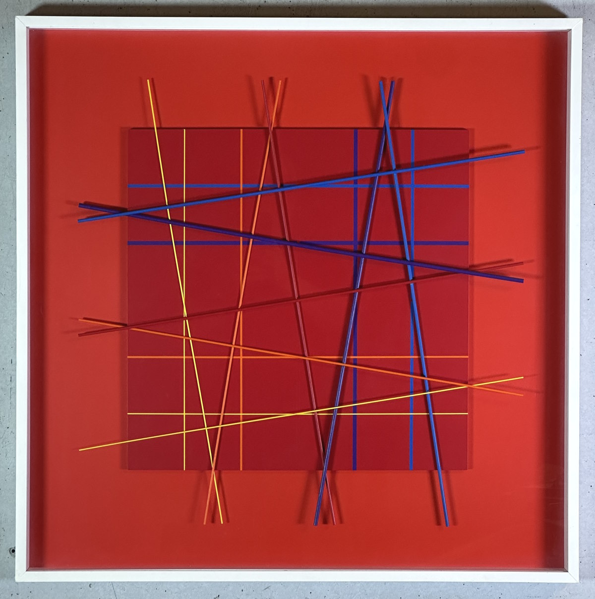 Abmessung: 80 x 80 cm. Rückseitig signiert, datiert und mit Werkbeschrieb. Angeboten in der Original-Rahmung.