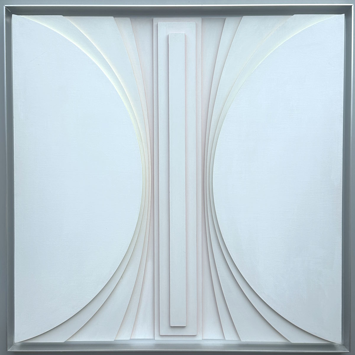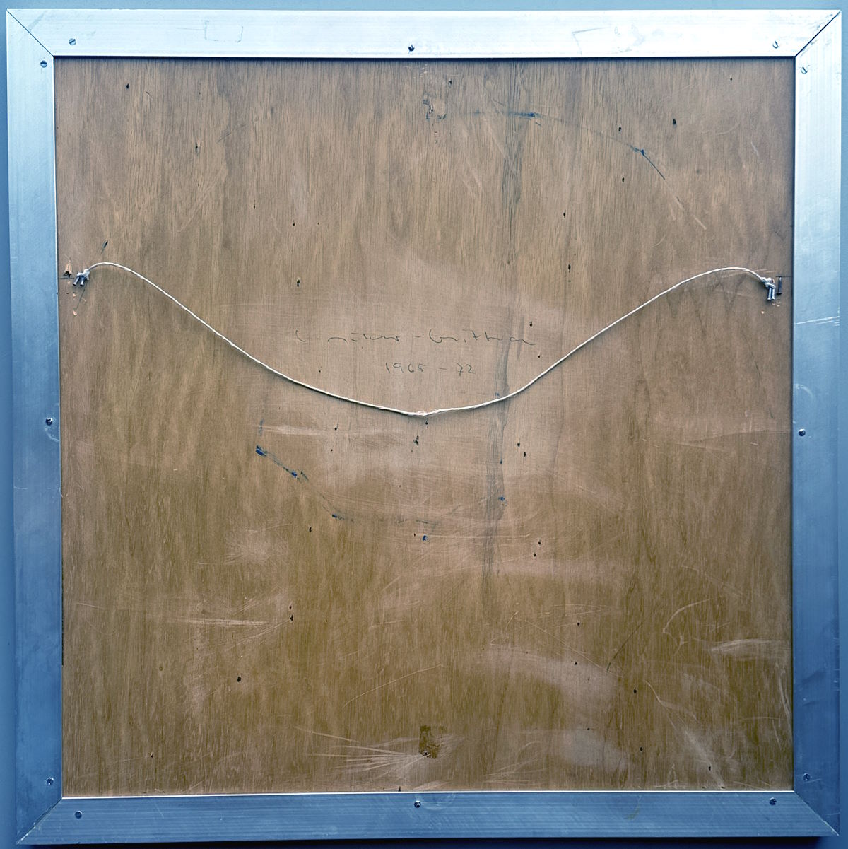 Abmessung: 60 cm x 60 cm x 3 cm. Angeboten im Original Alu Rahmen. Auf der Rückseite vom Künstler eigenhändig signiert und datiert: w.müller - brittnau 1965 - 1972.