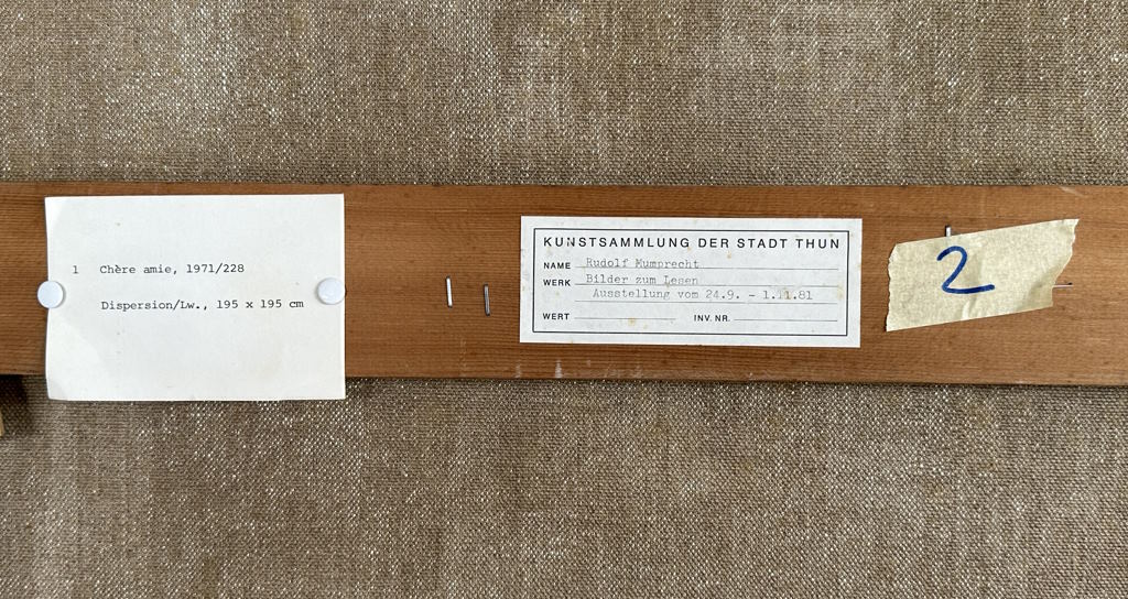Kunstsammlung der Stadt Thun - Rudolf Mumprecht Bilder zum Lesen - 24. September - 1. Novemer 1981. Das Bild ist im Ausstellungskatalog auf Seite 10 abgebildet.