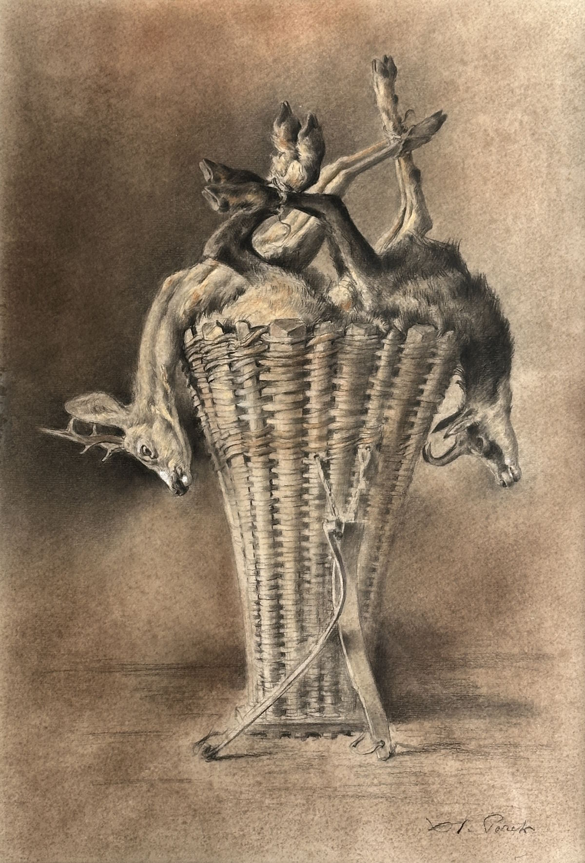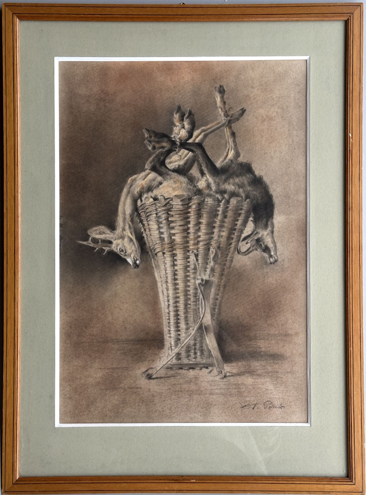 Abmessung: 54 cm x 37 cm. Unten rechts signiert X. de Poret. Gerahmt und hinter Glas (72 cm x 53 cm)