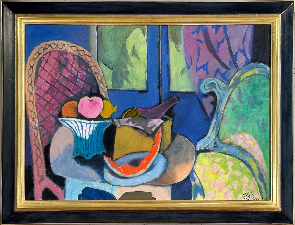 Abmessung: 65 x 90 cm. Unten rechts signiert. HSteiner. Rückseitig auf der Leinwand vom Künstler betitelt. Angeboten in einem exklusiven, hochwertigen Rahmen (81 x 106 cm).