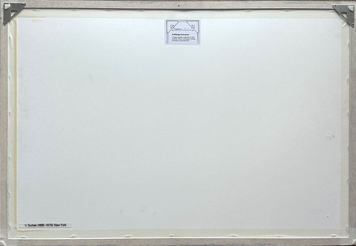 Abmessung: 65 cm x 97 cm. Unten links signiert: V. Surbek. Gerahmt.