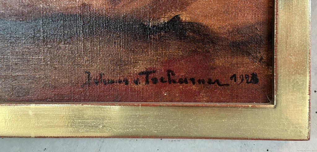 Abmessung: 75 x 115 cm. Unten rechts signiert und datiert: Johann v. Tscharner 1928. Gerahmt. Ein Hauptwerk des Künstlers.