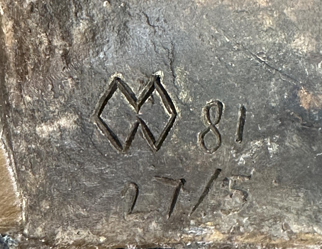 Höhe 23 cm. Tiefe 22 cm, Breite 18 cm. In der Bronze monogrammiert MW, datiert 81 und nummeriert 5/27.