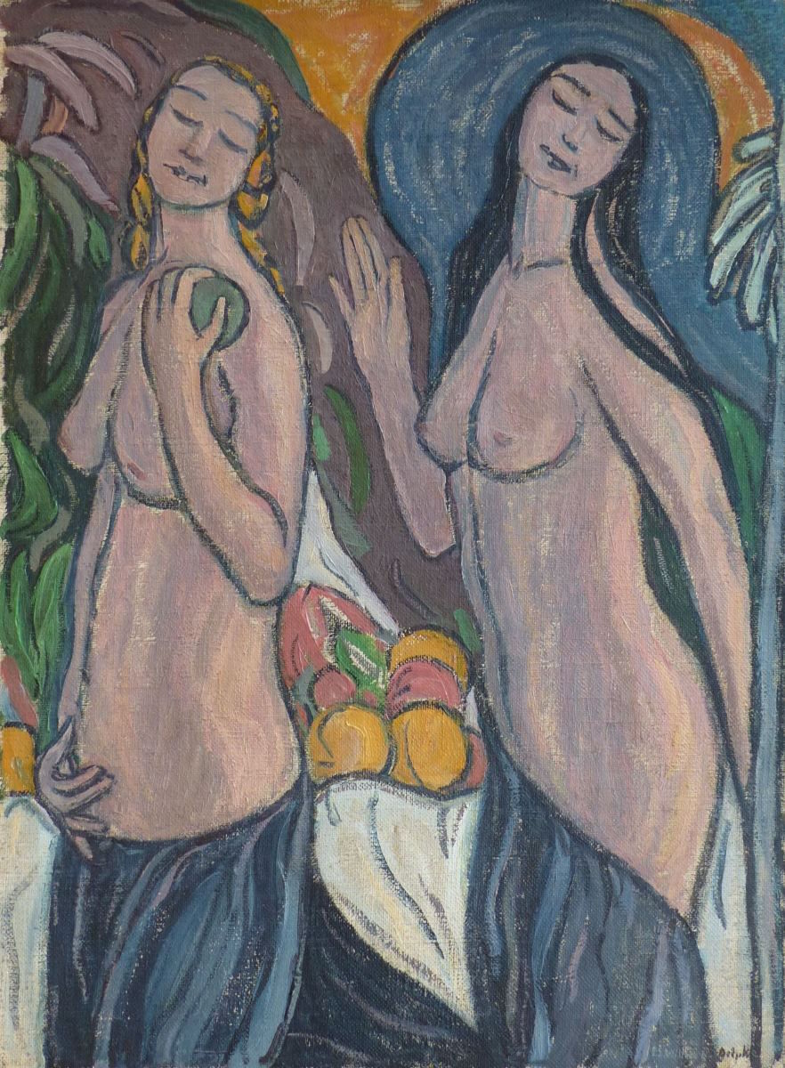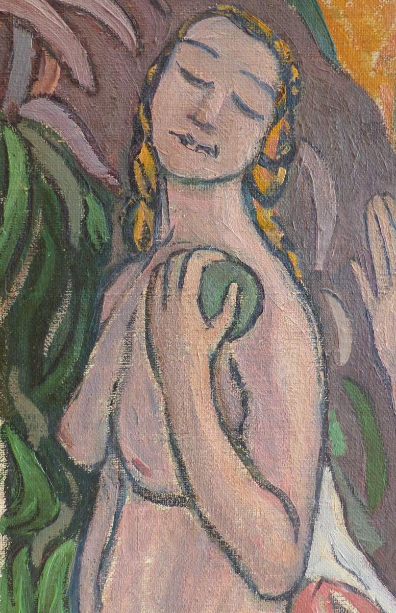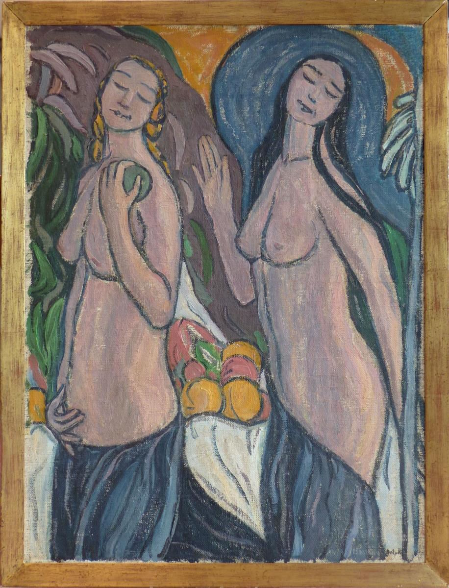 Abmessung: 100 x 75 cm. Unten rechts signiert: M. Wittwer - Gelpke. Gerahmt. Zeitlose, symbolistische Darstellung in schöner Erhaltung.